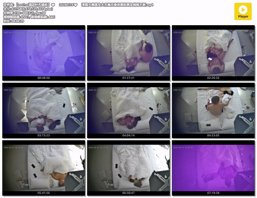 【影片名稱】: 【酒店针孔偷拍】❤️20260114❤️浑圆大胸美女大方展示身体惹的男友啪啪不断