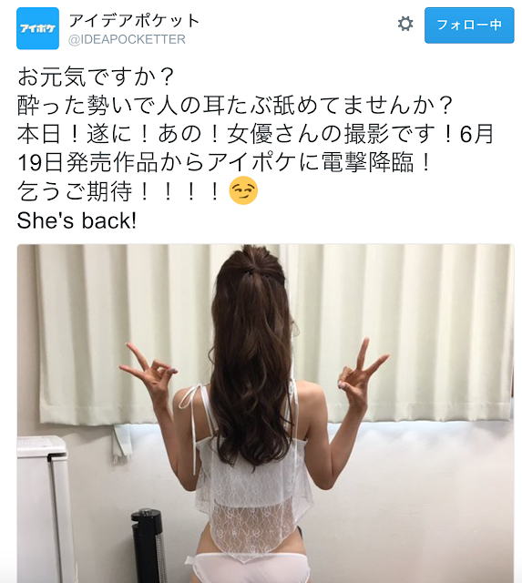 還記得片商ideapocket的謎題嗎? 他們是用「She’s back」來鄭重介紹這位身材極為修長、留著長髮的女孩回歸,當時筆者是以這家片商之前合作過的女優及事務所背景預測這位女優就是「冬月かえで(冬月楓)」,而在今天答案揭曉了: 正是冬月かえで(冬月楓)!